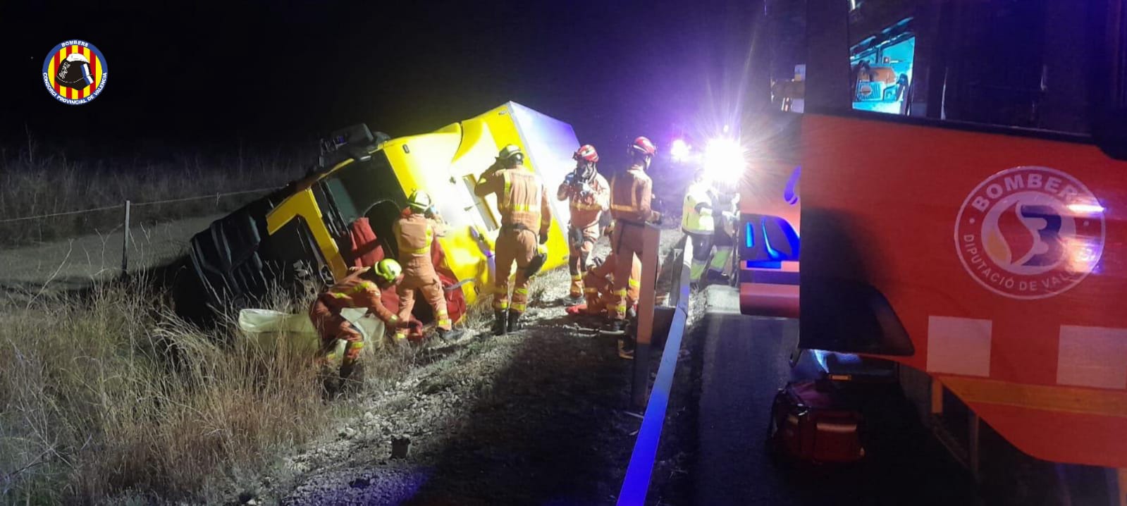 Dur accident el que s’ha viscut aquesta matinada a l’A-7 al terme municipal d’Ontinyent quan un camió ha bolcat del lateral, quedant el seu conductor atrapat i sent necessària la participació dels bombers de la ciutat i del sergent d’Alzira per extraure a l’home sent necessària també la utilització d’una taula de rescat.