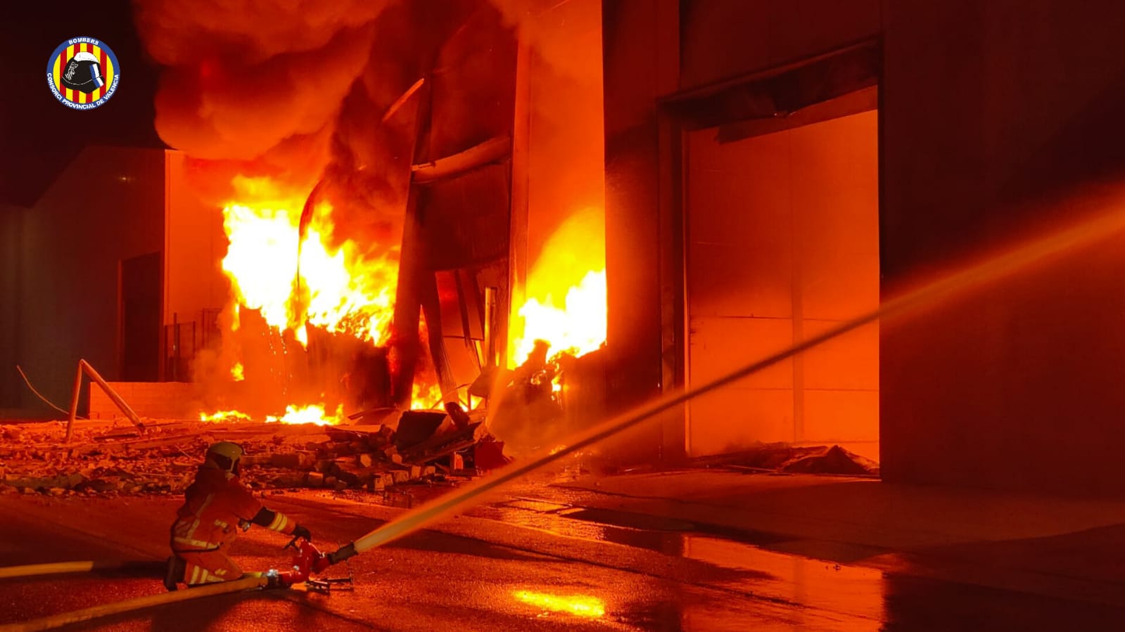 Un greu incendi destrueix una fàbrica de borra a Aielo de Malferit