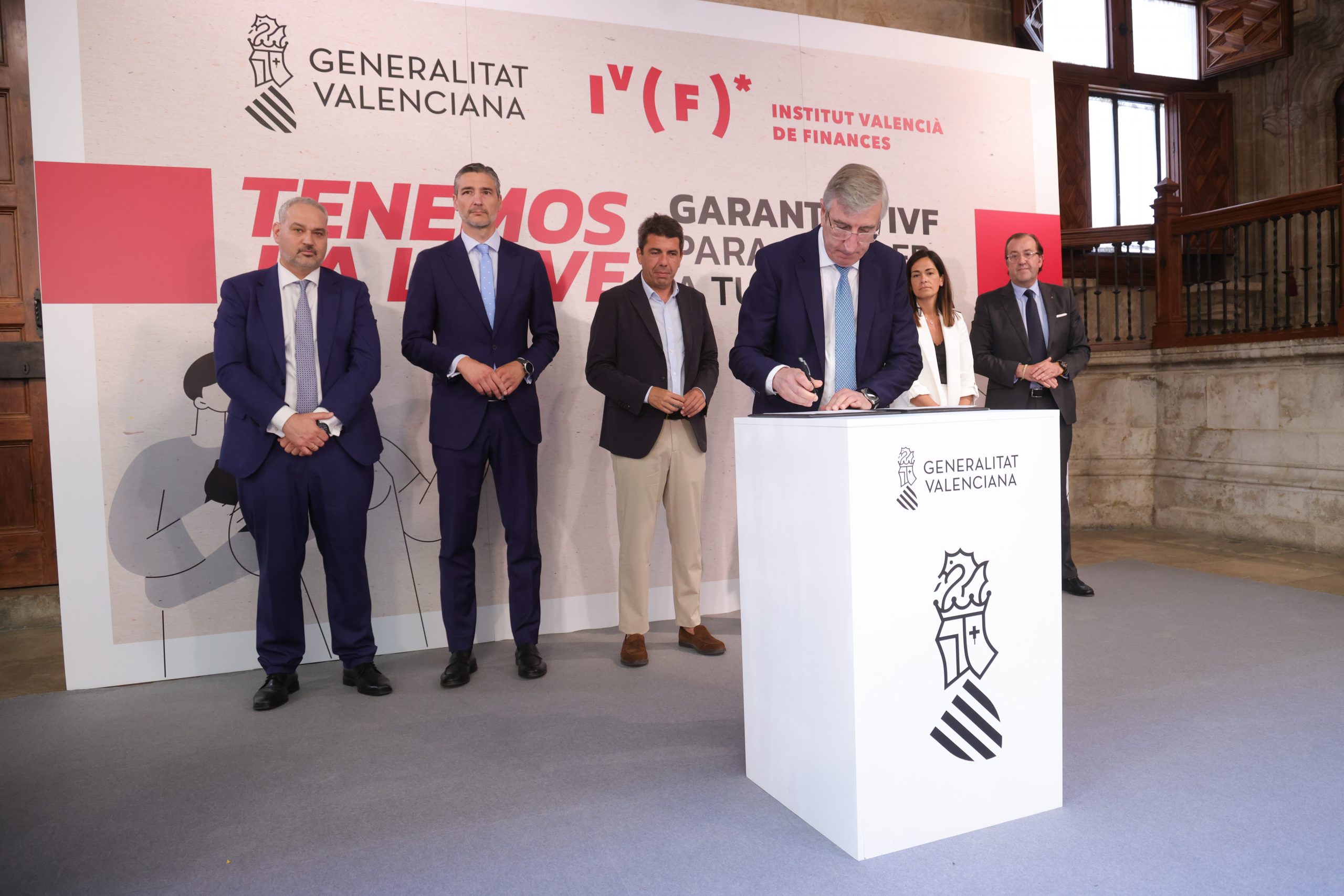 El Director General de Caixa Ontinyent, Vicent Penadés, va assistir ahir a l’acte de firma en el Palau de la Generalitat Valenciana amb el President, Carlos Mazón; la Vicepresidenta i Consellera de Serveis Socials, Igualtat i Vivenda, Susana Camarero; i la Consellera d’Hisenda, Economia i Administració Pública, Ruth Merino.
