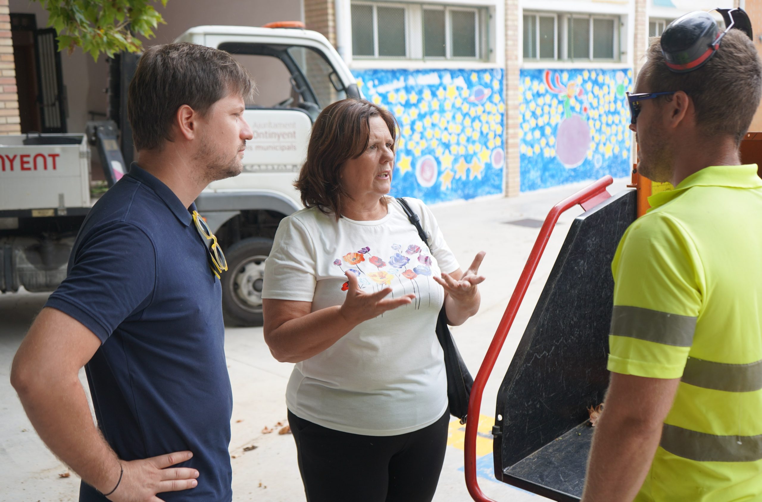 El Ayuntamiento de Ontinyent está llevando a cabo toda una serie de actuaciones para poner a punto los centros educativos de titularidad pública de la ciudad de cara al inicio del curso escolar 2024/2025. Las tareas están siendo llevadas a cabo de forma coordinada por las concejalías de Parques y Jardines, Servicios Municipales y Educación, con mejoras que atienen las peticiones que se hacen desde los centros. La regidora de Parques y Jardines, Sayo Gandia, y el regidor de Servicios Municipales, Jordi Vallés, han visitado algunos de los centros donde están llevándose a cabo estas actuaciones, como el CEIP Carmelo Ripoll.