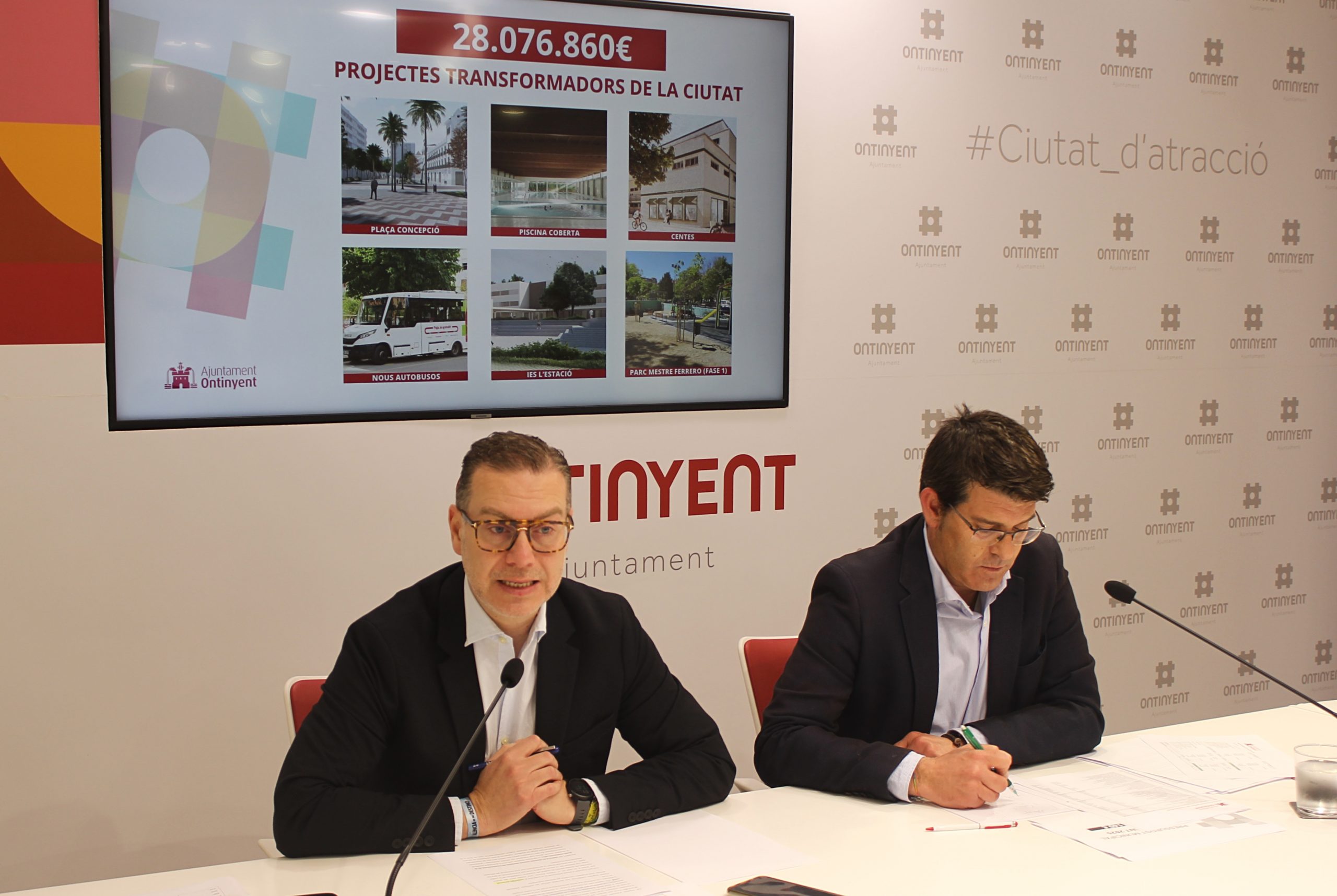 Ontinyent contará en 2025 con un presupuesto municipal de 64 millones de euros, que incluirá una inversión de más de 28 millones de euros, de los cuales el 91’2% provienen de fondos conseguidos otras administraciones. Son algunas de las cifras más destacadas del proyecto de cuentas municipales para 2025 que presentaban este jueves el alcalde de Ontinyent, Jorge Rodríguez, y el regidor de Hacienda, Juan Pablo Úbeda. Un proyecto que será sometido a votación plenaria el próximo 12 de diciembre, y en palabras del alcalde “no es solo un presupuesto récord que abre ciclo inversor y nuevos retos, sino que deja definitivamente atrás una época en la que la ciudad se quejaba, con razón, de que las inversiones no llegaban”.