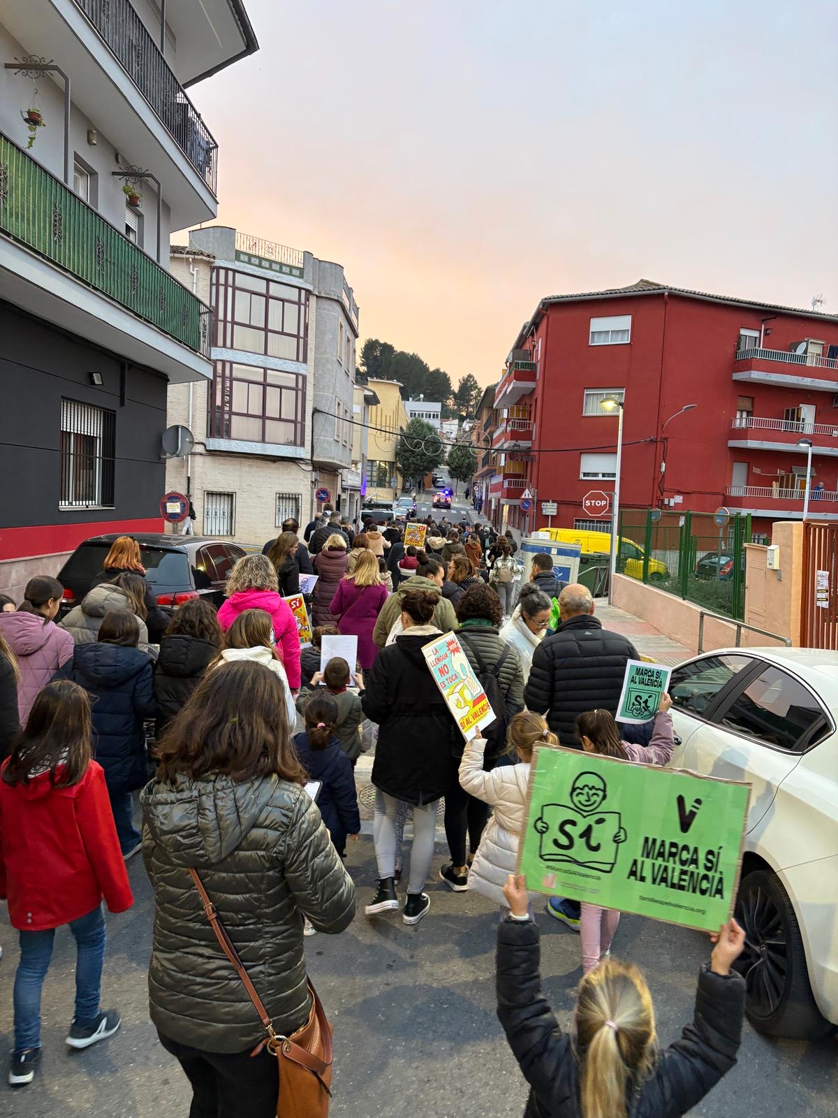 La marcha, que contó con una importante participación, estuvo encabezada por la Colla de dolçaines i percussió “La Vall Blanca” de Castelló de Rugat. El recorrido comenzó en el Parque de l’Horta Gran y finalizó en la puerta del Ayuntamiento, donde se leyó el manifiesto de “Famílies por el valencià”. En este documento se explicó la importancia de la enseñanza en valenciano para los niños y niñas, así como la necesidad de garantizar su derecho a estudiar en esta lengua y derogar la Ley de “Libertad Educativa”.